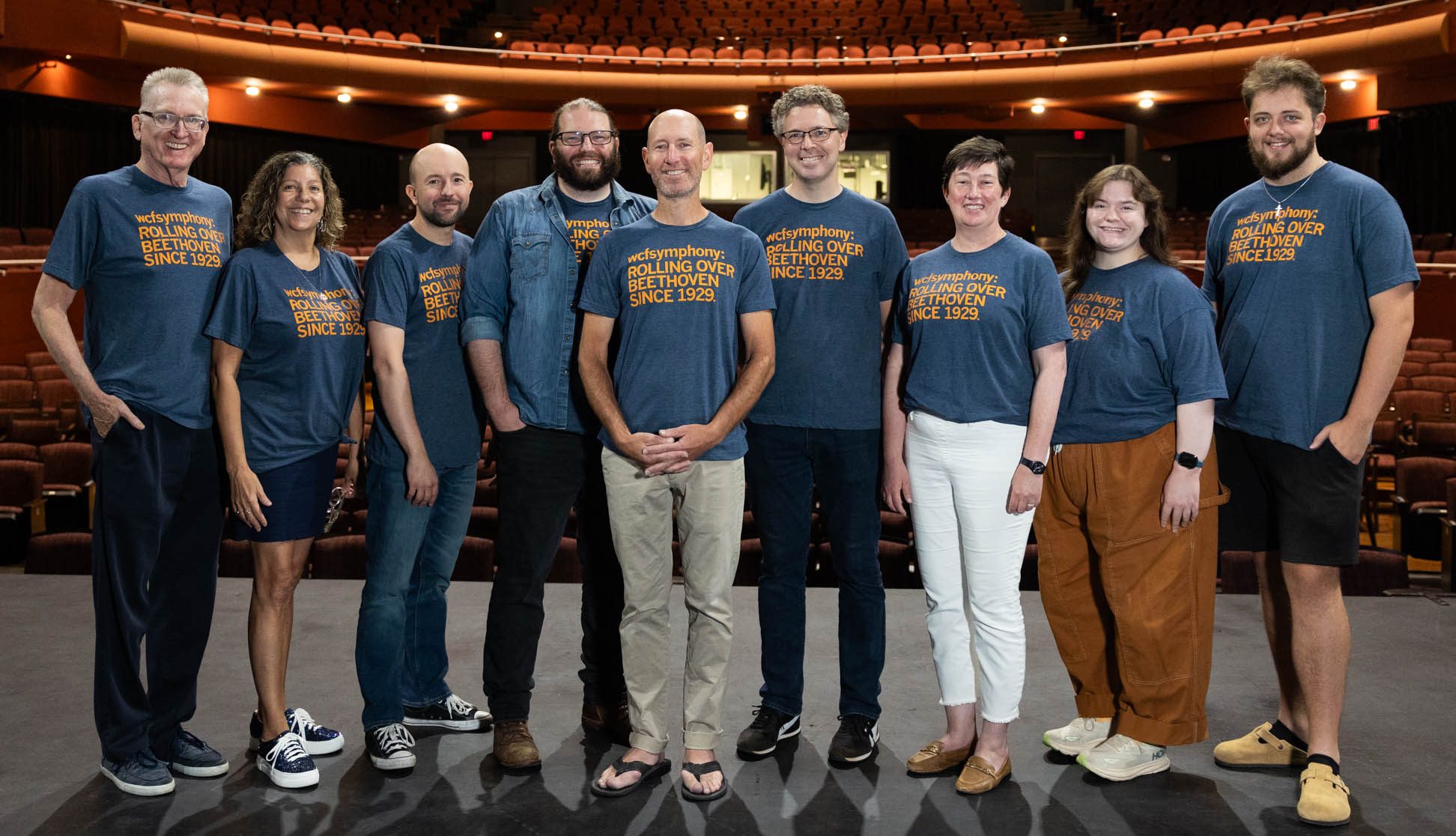 wcfsymphony staff pictured in photo (left to right): Mike Cunningham, Bonita Cunningham, Matt Andreini, Jordan Bancroft, Jason Weinberger, Erik Rohde, Sally Malcolm, Emily Paul, Adam McDonald